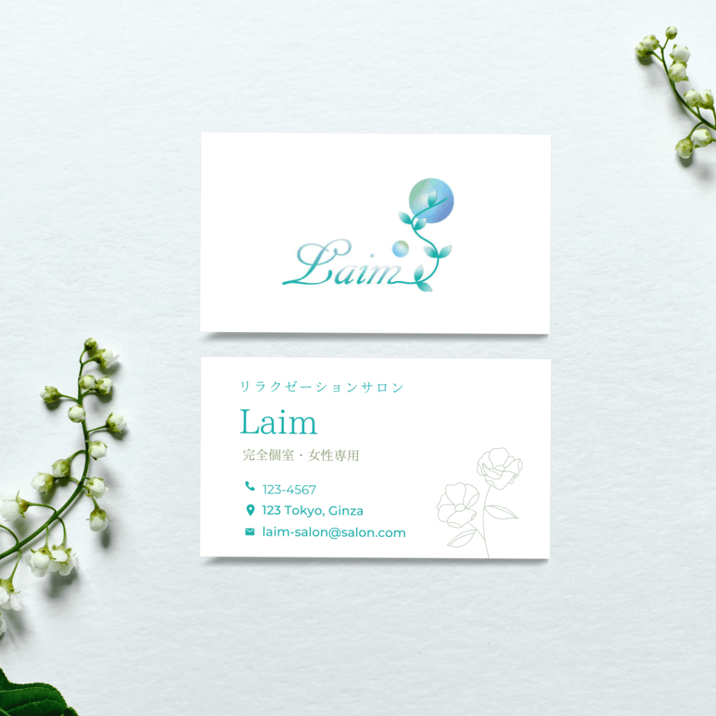 爽やかな白背景の看板や名刺に合わせやすいデザインです。